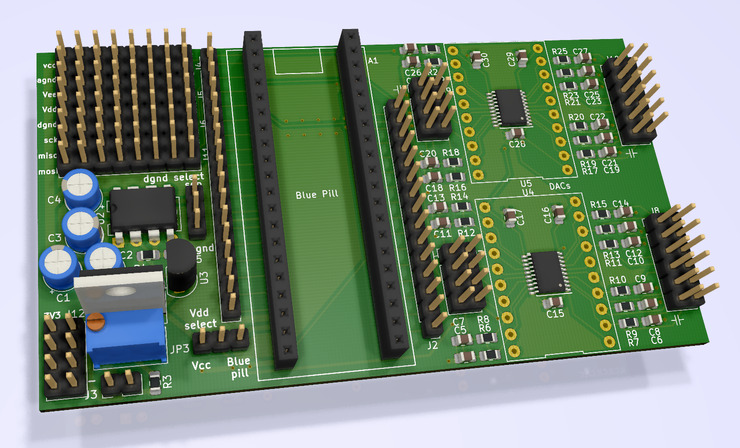 This works really fine, however the VCF suffers from a strong hum/hiss that seems to consist of the USB polling frequency (1 kHz) and the SPI bus transaction rate (not the clock frequency! All DACs are updated 1000x per second).